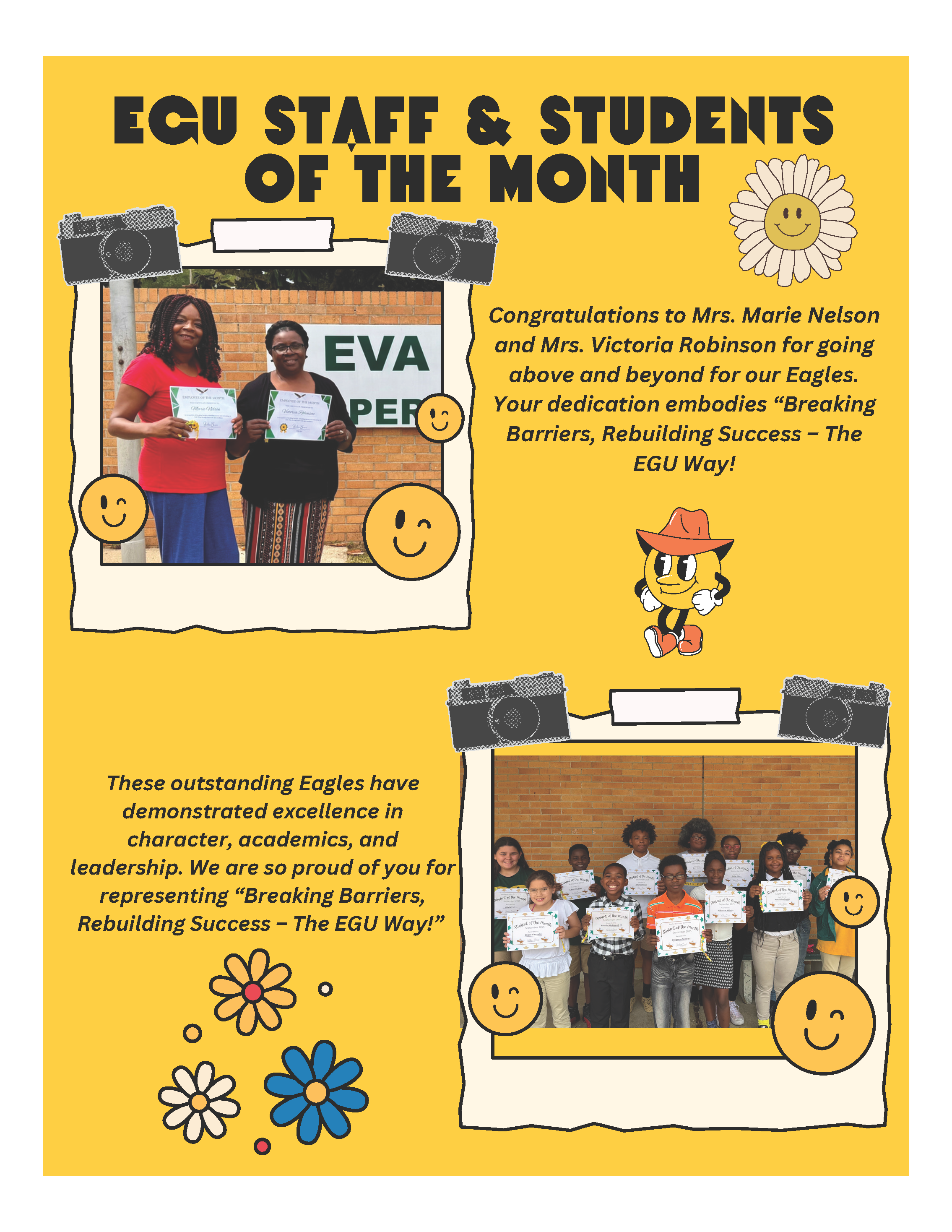 Congratulations to Mrs. Marie Nelson and Mrs. Victoria Robinson for going above and beyond for our Eagles. Your dedication embodies βBreaking Barriers, Rebuilding Success β The EGU Way!β